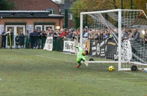 14 The penalty shot hits the post